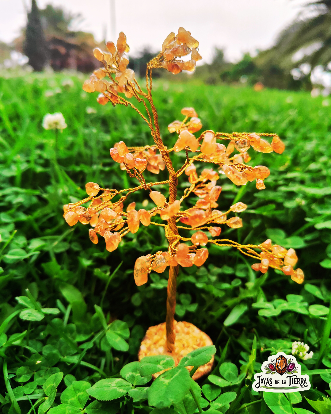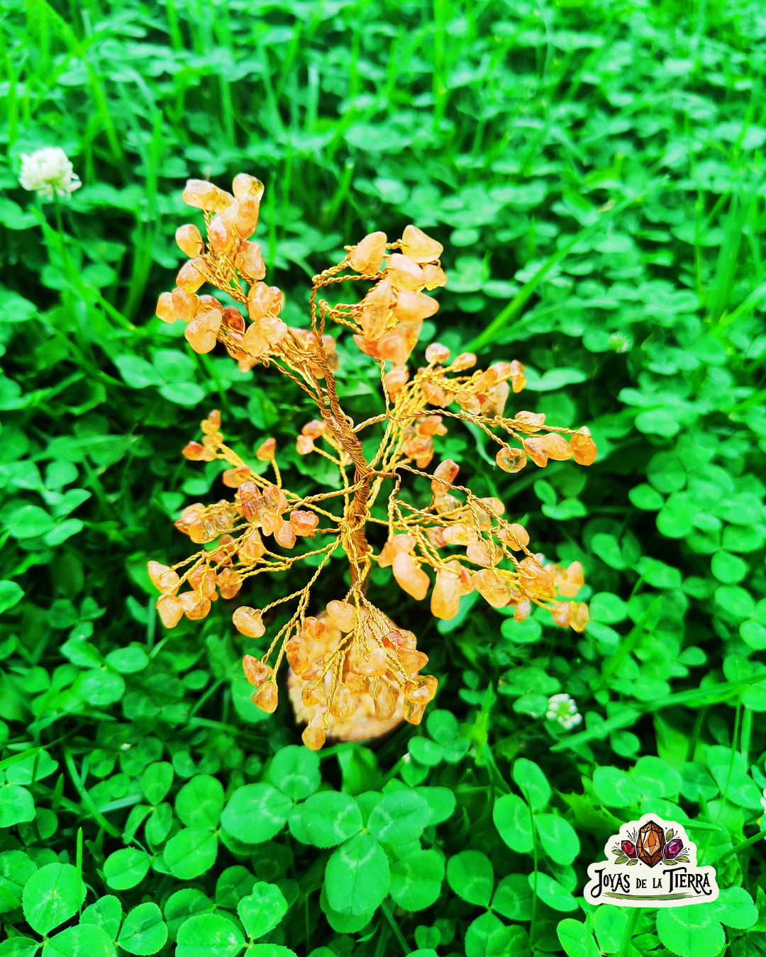 Este hermoso árbol artesanal está elaborado con chips naturales de Citrino, la piedra del sol, la abundancia y la energía positiva. Su brillo dorado transmite alegría, vitalidad y confianza en uno mismo, siendo un poderoso aliado para atraer prosperidad.